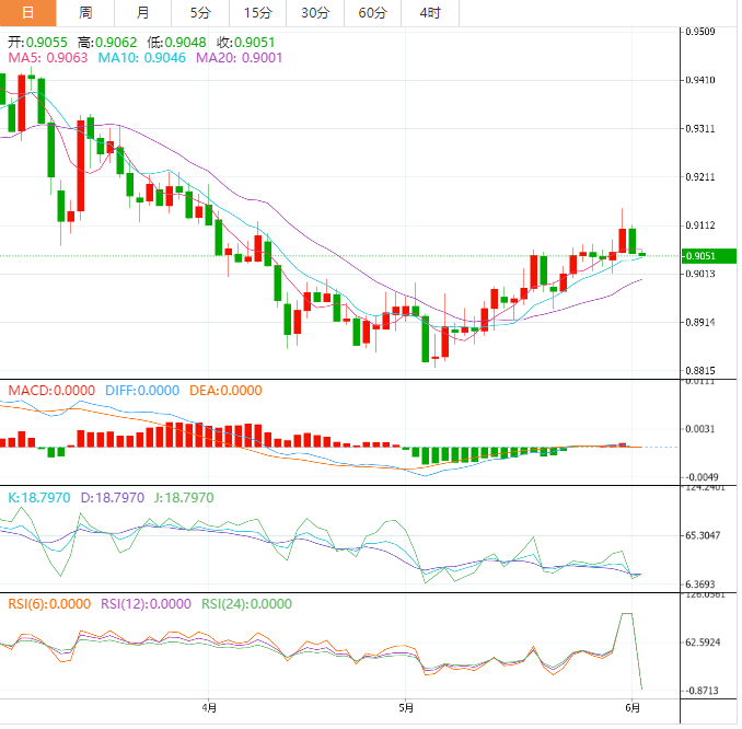 在瑞士法郎方面,4月份的年度实际零售额大幅收缩3.7%,而市场预期收缩1.4%,之前的数据收缩1.9%。周三,瑞士国家银行(SNB)主席托马斯·乔丹(Thomas Jordan)表示,他们必须尽快将通货膨胀率降至2%以下,并指出,由于去全球化,他认为未来通货膨胀的风险高于通货紧缩。