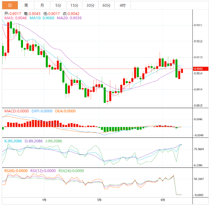 如果该报价在0.9100上方保持坚挺,那么就不能排除其向前一个月高点0.9150附近反弹的可能性。