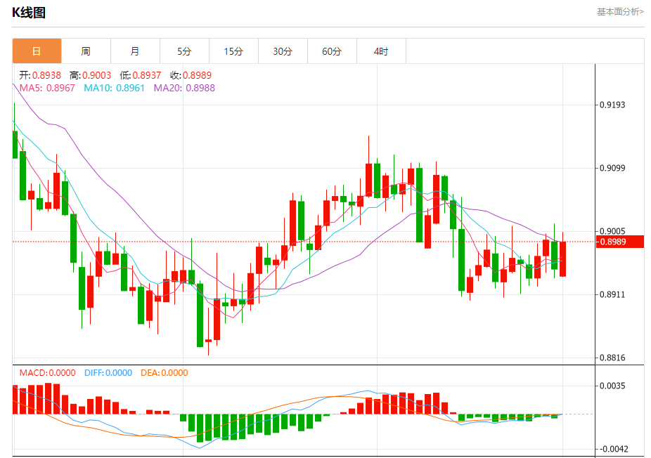 周一纽盘,瑞郎兑美元交投于0.8990,涨幅为0.45%。