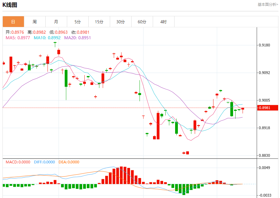 周三纽盘,瑞郎兑美元交投于0.8983,涨幅为0.04%。