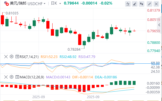 10月2日,周四亚洲交易时段,美元/瑞郎货币对在0.7960附近窄幅区间内交易。瑞士法郎货币对盘整,投资者等待将于格林威治标准时间06:30公布的9月份瑞士消费者价格指数(CPI)数据。