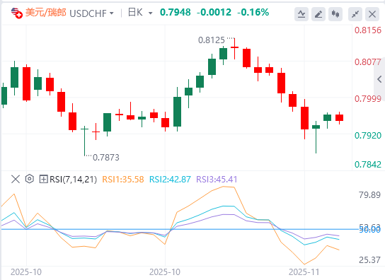 周一,随着美元(USD)上涨,美元兑瑞郎汇率上涨,而美联储(Fed)12月降息押注减少。芝加哥商品交易所FedWatch工具显示,金融市场目前预计美联储在12月会议上将基准隔夜借贷利率下调25个基点(bps)的概率为43%,低于一周前市场定价的62%。