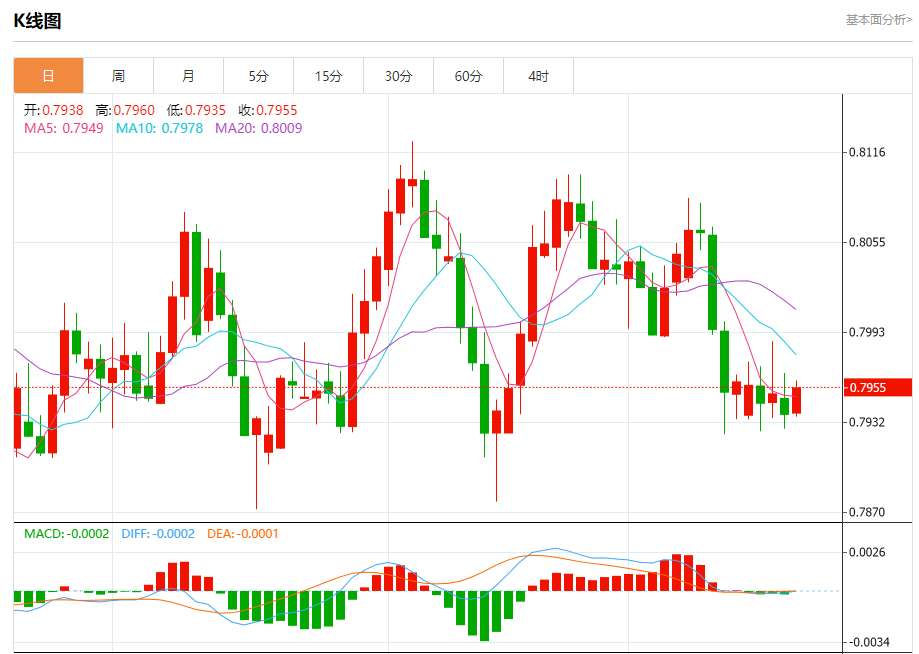 周五纽盘,瑞郎兑美元交投于0.7961,涨幅为0.26%。