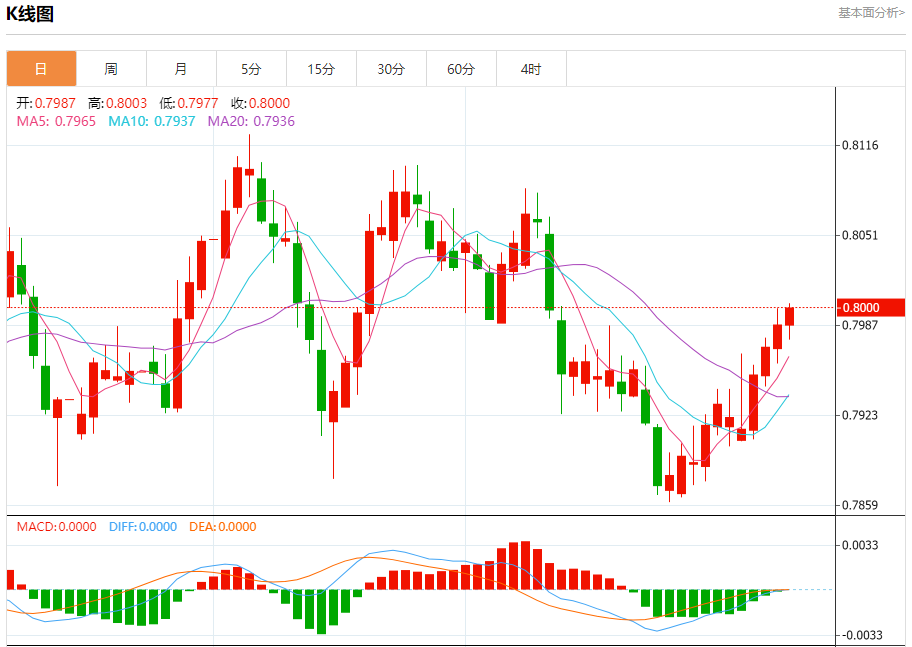 周四纽盘,瑞郎兑美元交投于0.7980,涨幅为0.08%。 瑞郎基本面分析 瑞士通胀率上月自去年7月以来首次回升,缓解了市场对瑞士央行重新引入负利率的压力。 统计局周四表示,消费者价格同比上涨0.1%,高于11月的零增长,与市场预期一致。这一结果意味着第四季度通胀将符合瑞士央行0.1%的预测。央行在
