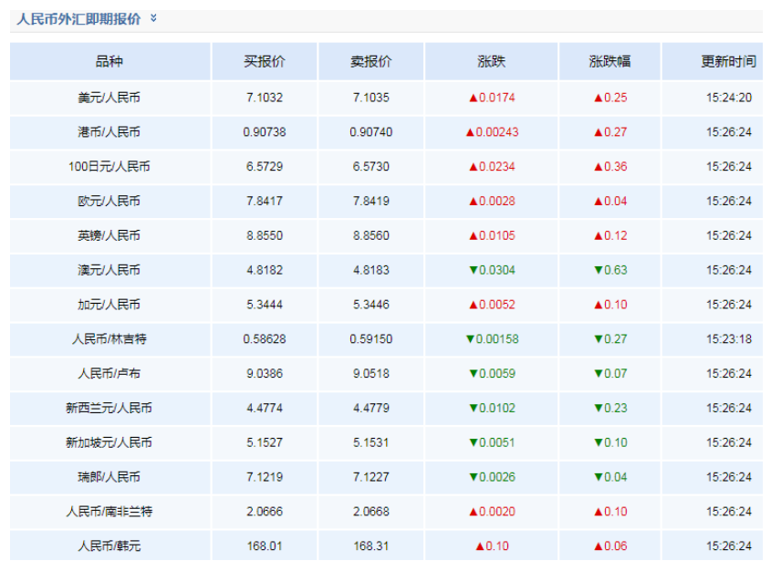 亚汇网提供了人民币即期汇率(2026年1月4日): 人民币即期汇率(2026年1月4日) 类别 最新价 涨跌幅 6.9931 0.0000 英镑对人民币汇率 9.4144 -0.1130 8.1945 -0.2301 人民币对日元汇率 22.4283 0.1344 更多人民币,请关注亚汇网:、专栏 备注:以上人民币汇率查询仅供参考,请以官方价格为准。 您可能还对以下内容感兴趣: