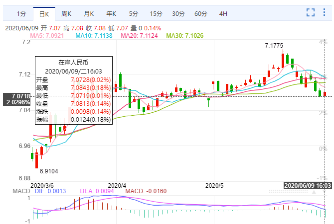 在岸人民币兑美元急跌,随韩朝关系突然急转直下以及美元指数反弹,人民币汇率终结两日的反弹势头。在岸人民币现报7.0836元,较昨日官方收盘价7.0745元跌91点,跌幅0.13%;离岸人民币报7.0828元,大跌259点,跌幅0.37%。