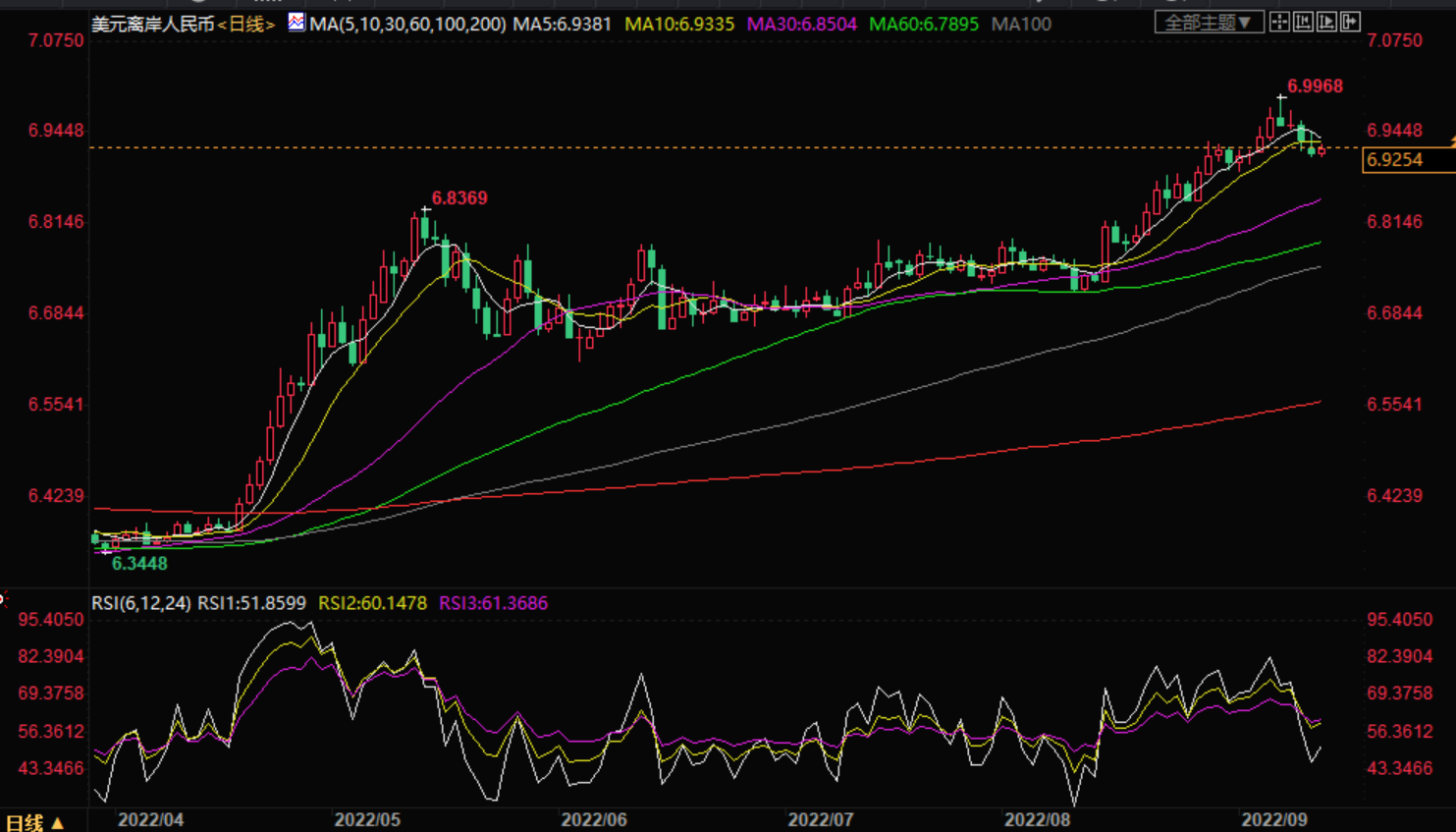 或者,恢复走势需要从10日移动均线(截至发稿时为6.9355)开始验证。