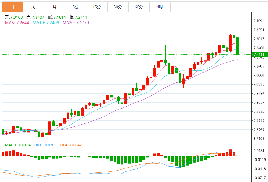 技术上,下一个阻力位见于2005/14年下行趋势的61.8%斐波那契回撤位,以及始于2016年底的趋势线7.4220/7.4540区域,我们将预计达到该位置将出现暂停。尽管如此,如果突破这一点将有可能一路攀升至78.6%斐波那契回撤位7.7978,届时我们将更有信心出现稳定的顶部。