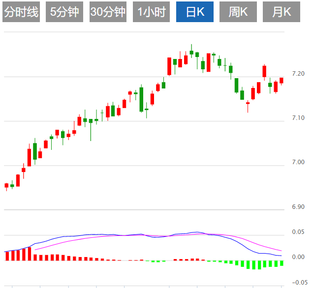 如果在 7.2270 附近离岸人民币持续疲软,则不排除跌向年线低位 6 月份 7.2860 附近的可能。