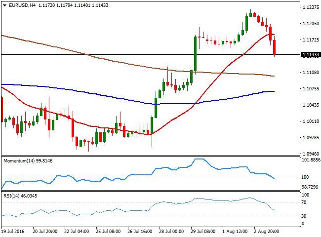 4小时图上,欧元/美元趋于下跌,汇价跌穿20SMA,技术指标在正面领域延续跌势,下穿中线迈向跌势。若跌穿昨日低位1.1140,将跌向1.1085/1.1120,不过进一步的跌势取决于周五非农就业报告结果。