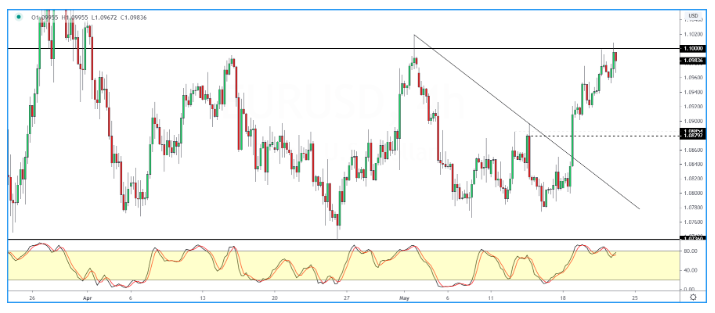 而如果欧元/美元重新反弹突破1.1000关口,则将迎来更大涨势。