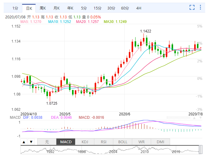 周三(7月8日)亚市早盘,欧元兑美元窄幅整理,最新交投于1.1270附近。隔夜这一货币对出现了三天来首次下跌,近来欧元/美元的上涨动能与风险资产的强劲涨势密切相关,因而周二美股和其他风险资产下跌令其也受到打击。一些业内人士表示,鉴于欧洲的刺激计划并非已经板上钉钉,投资者之前可能对欧元过于乐观。