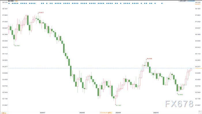 市场上,因美国经济刺激法案落地预期大幅缩小和特朗普连任美国总统希望大增,美元指数持续上涨,已经连续第四天收阳,创近1个月内新高,表现较为强势。