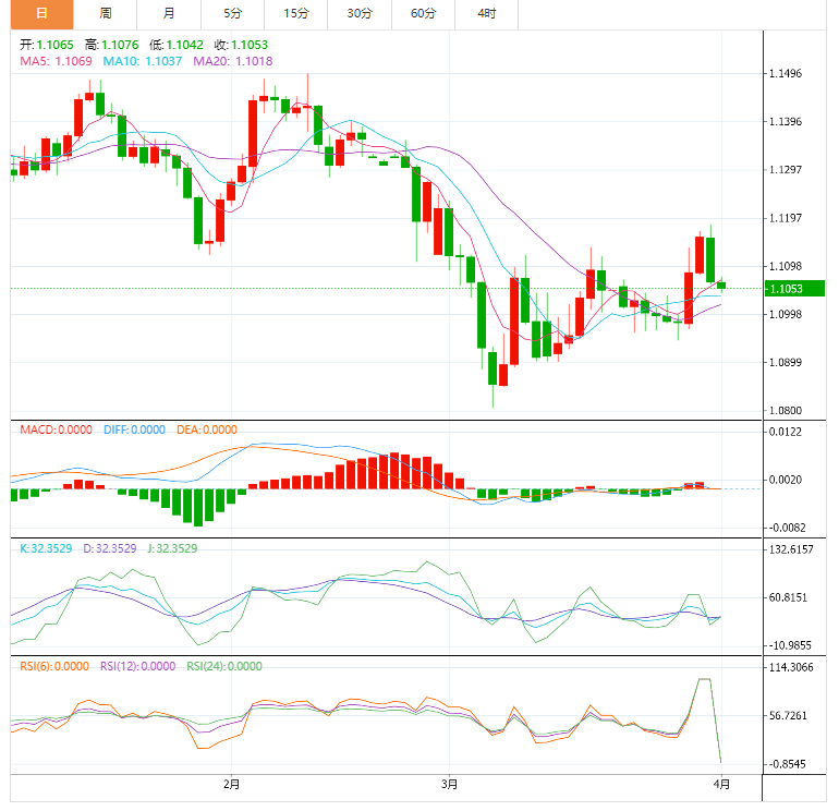 1、汇价触及50%斐波回档位,处于61.8%斐波回档位和W形态颈线1.1030附近。若突破该位,关注下行以及突破1.10的前景。不过若守住该位,汇价将升向1.12。