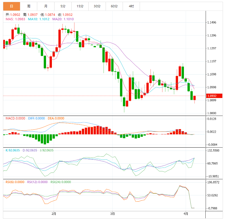 1、欧元兑美元终于重拾升势,尽管在周三早盘触及1.0875/70的新低。德国2月份工厂订单环比下降2.2%,3月份建筑业PMI降至50.9。在欧元区,2月份生产者价格指数环比上涨1.1%,低于预期,过去12个月同比上涨31.4%。