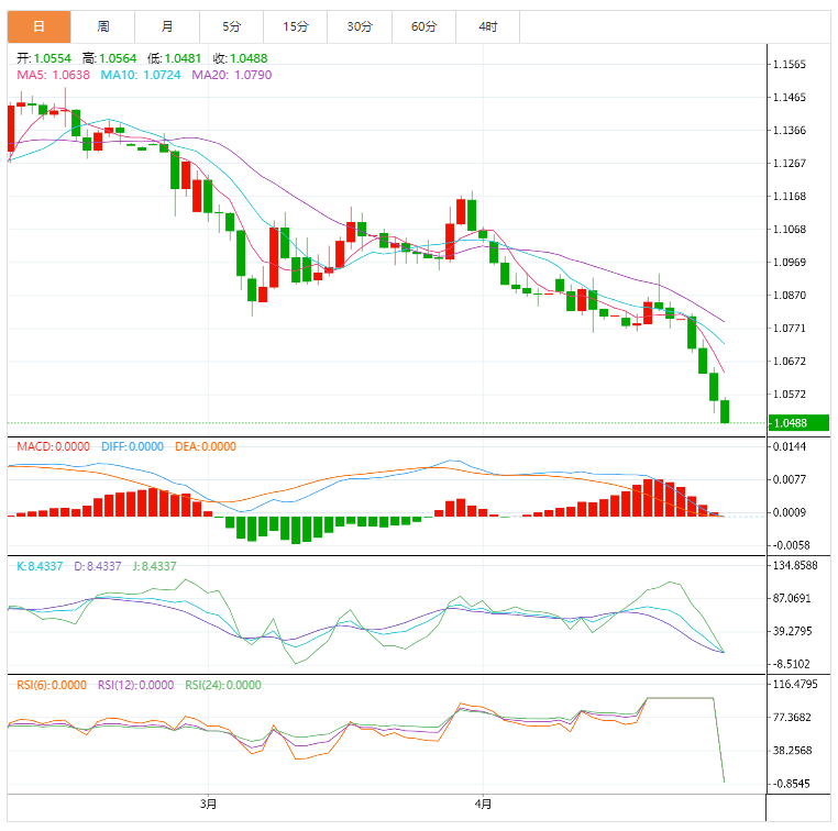 3、欧元兑美元跌破1.0500,处于2017年1月以来最低水平,空头料推动价格继续下跌,周四有望录得连续第六日下跌。美元走强依然是主线,继续给欧元兑美元带来下行压力。在中国封锁以及美联储激进加息押注上升的背景下,全球经济增长担忧使得避险货币美元依然具有吸引力。