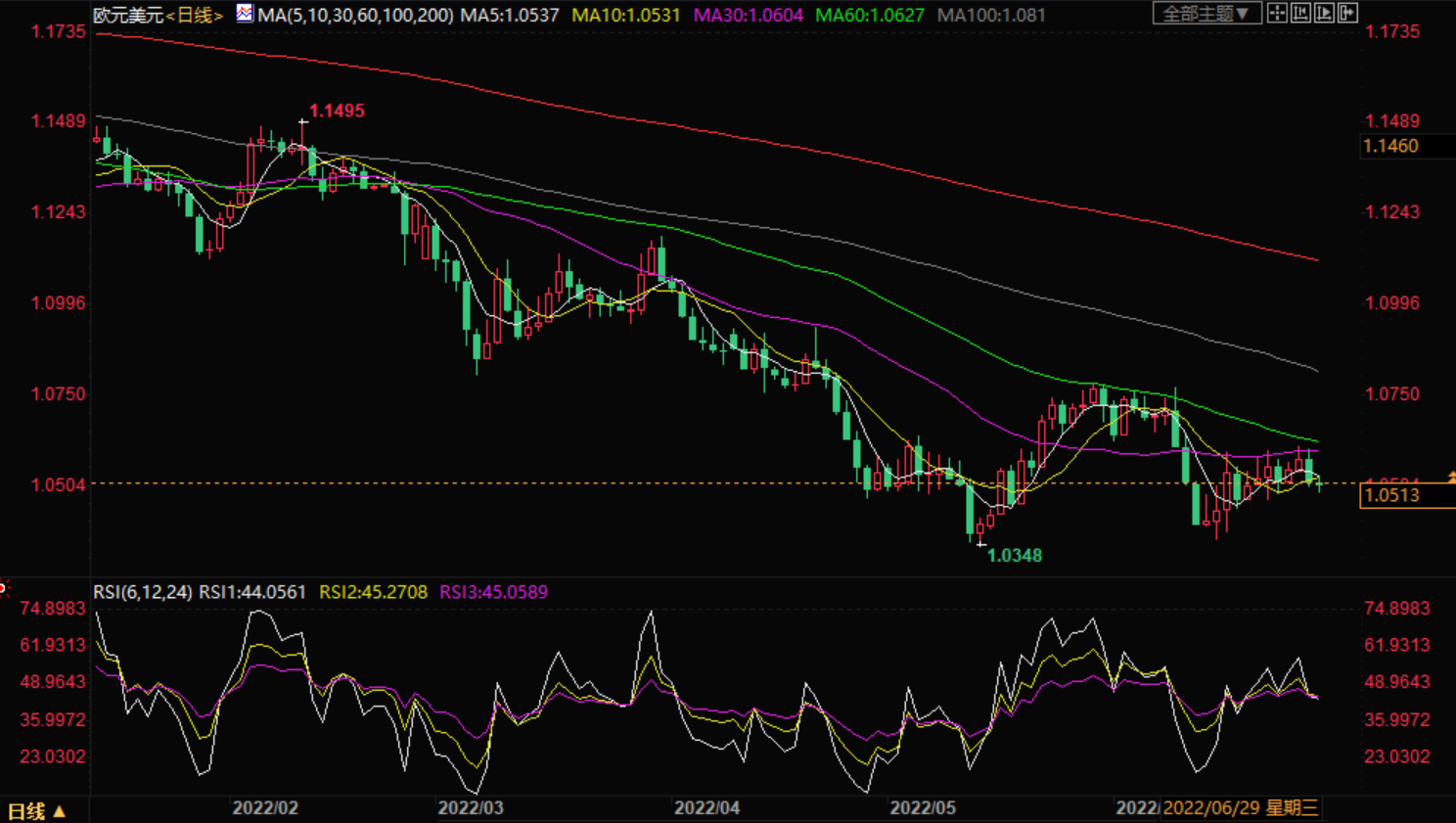 3、如果欧元/美元跌破心理支撑位1.0500,美元多头可能会进一步走强。如果欧元/美元跌破这一关口,欧元/美元将测试6 月22 日的低点1.0469。若欧元/美元跌破6 月22 日低点,将进一步下跌测试 6 月17 日低点1.0444。