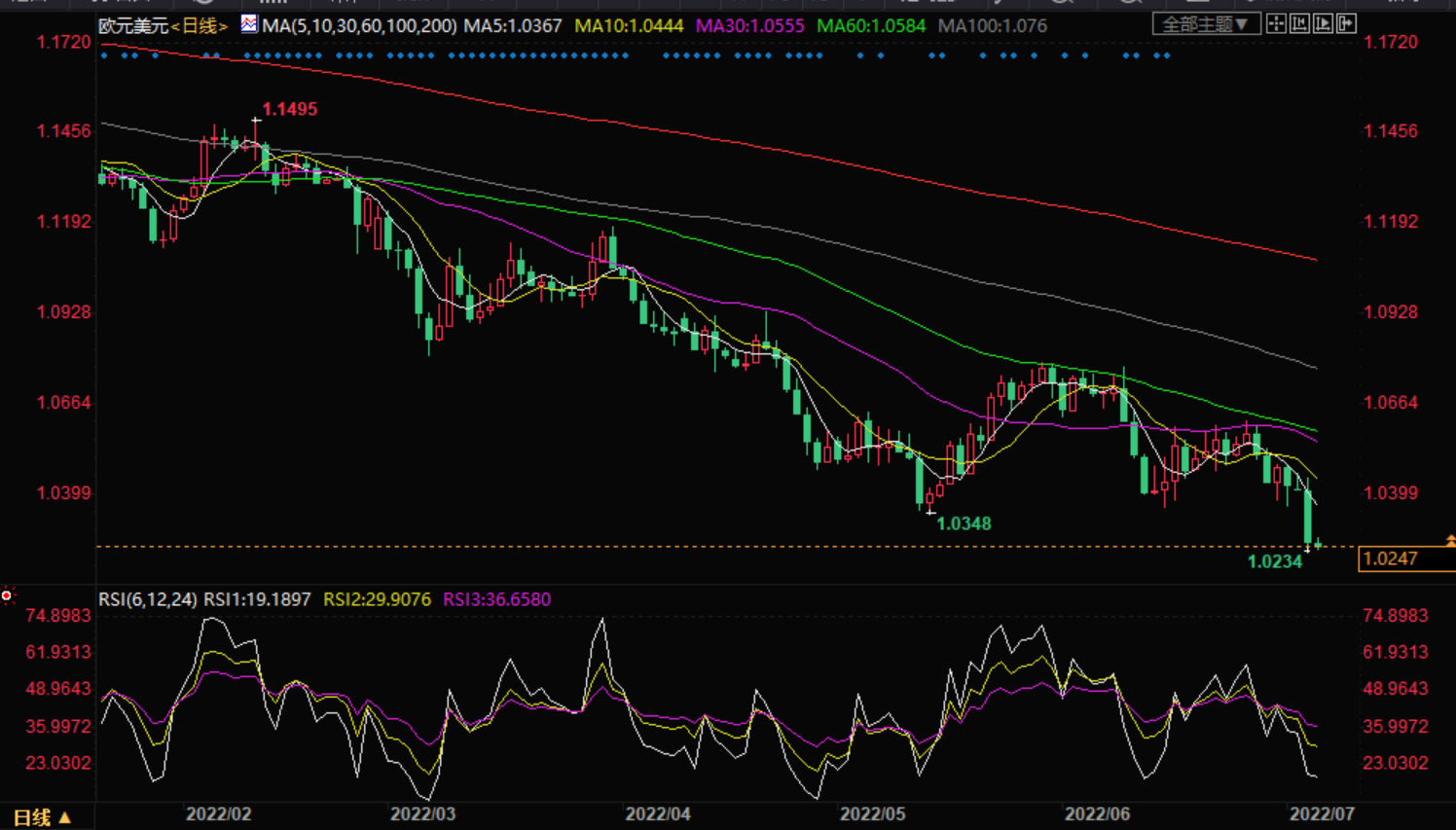 1、欧元兑美元空头在近20年低点附近暂歇,即使交易员徘徊于1.0250附近。值得指出的是,前一日汇价突破两周支撑线后录得2020年3月以来最大单日跌幅。