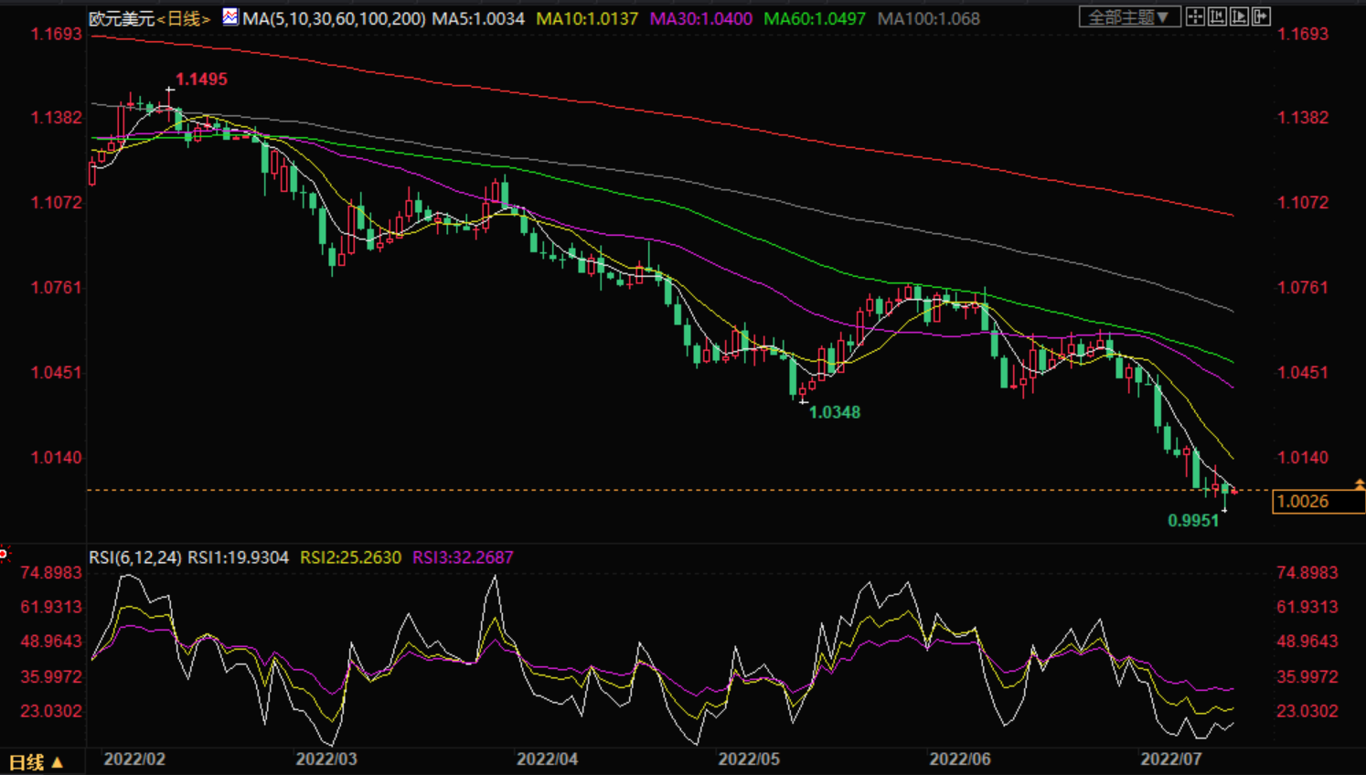 尽管最近的催化剂好坏参半,但美国数据的走强让欧元兑美元的空头仍对刷新多年低点抱有希望。周四,美国劳工统计局(Bureau of Labor Statistics)提到,6月份美国最终需求生产者价格指数(PPI)同比从5月份的10.9%攀升至11.3%。这一数字超过了市场预期的10.7%。此外,7月9日当周初请失业金人数为24.4万人,前一周为23.5万人,市场预期为23.5万人。上周初请失业金人数为五个月来最高,令市场担心经济衰退开始。