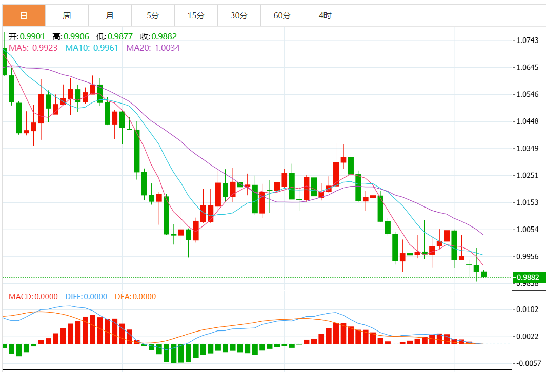 在上周试图果断收回平价失败后,欧元/美元重新开始持续下跌,在撰写本文时汇率略高于 0.9900。该区域可以作为一个可能的支撑,但如果卖家设法在每日收盘价中突破该区域,我们不能判断向 0.9670 移动。