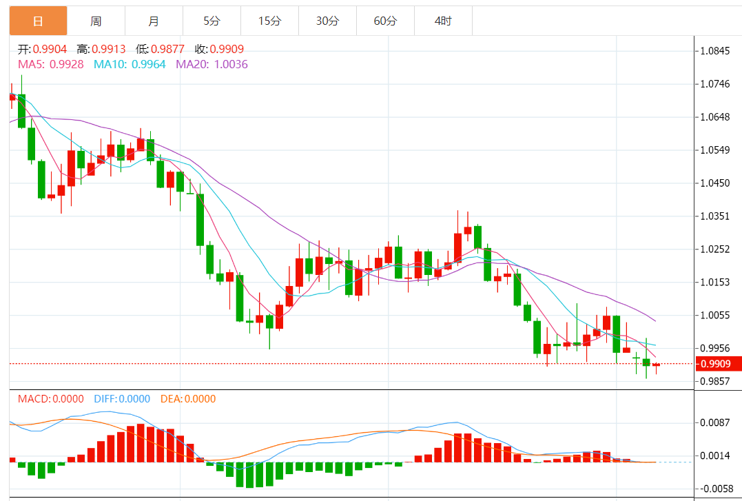 技术上,欧元兑美元短暂跌破2000/2008年升势的78.6%斐波回档位0.9900,虽然汇价尚未持续性跌破该位,但终将取得决定性突破。这将为汇价指向我们的目标位0.9609/0.9592扫清道路。