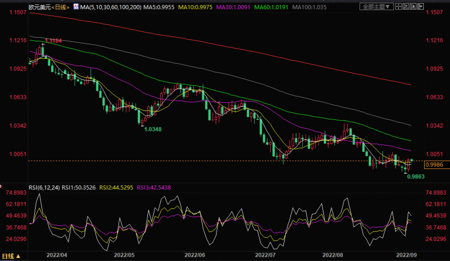 技术上,欧元兑美元在突破下降三角图模式后大幅走高。从8月31日的高点1.0079开始,图表的向下趋势线被绘制出来,水平支撑位位于周一的低点0.9878。