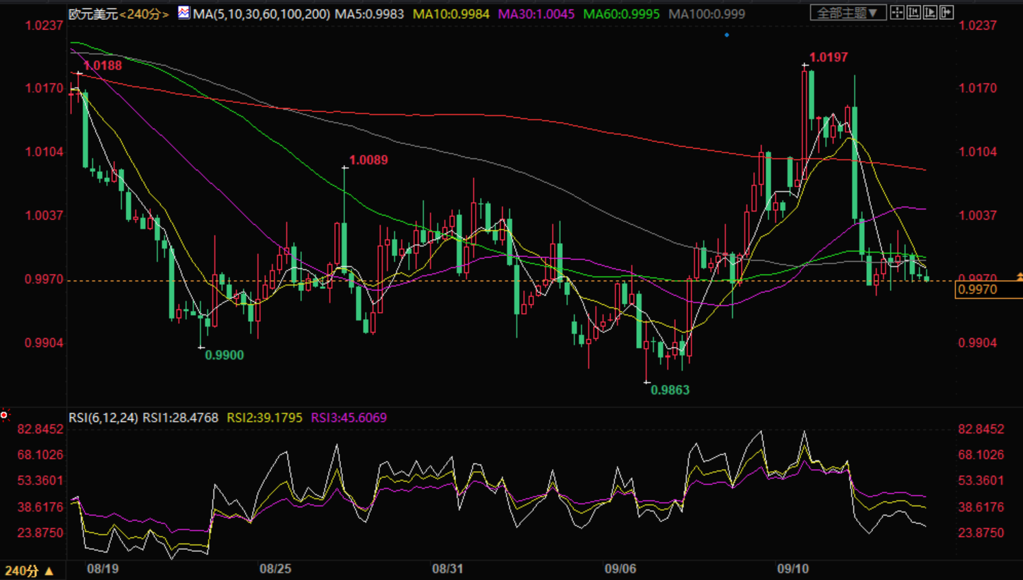 欧元兑美元已经跌破20期指数移动平均线(EMA) 1.0022,这增加了下行过滤器。
