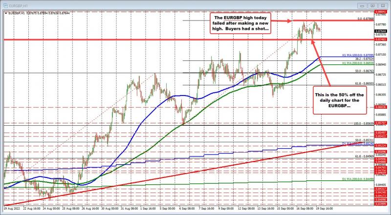 欧元/英镑从2020年9月的高点跌至2022年3月低点的50%上方。50%的水平出现在0.87465。今天的低点在这个水平上达到了0.87465。交易者将50%视为买家获胜或卖家获胜的晴雨表。到目前为止,买家正在赢得价格,目前的价格是0.8766。