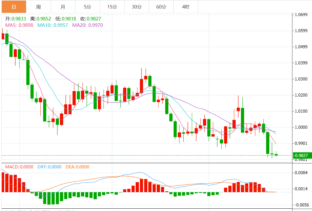 14 天相对强弱指标 (RSI) 处在超卖范围紧上方,同时维持看跌,加大欧元/美元进一步下跌的前景。上行方面,若汇价试图反弹,周四高点0.9907 将成为首个强阻力。