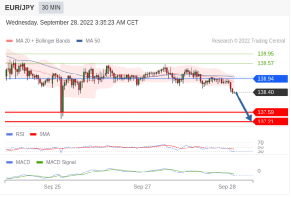 备选策略: 如突破 138.94 ,EUR/JPY 目标方向为 139.57 和 139.95 。