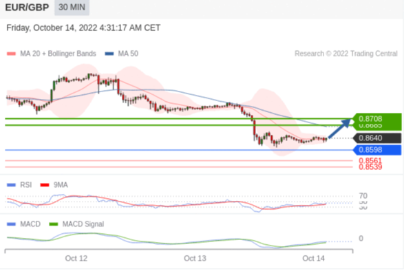 备选策略: 向下跌破 0.8598 ,将带来继续下跌的趋势,目标位为 0.8561 然后为 0.8539 。