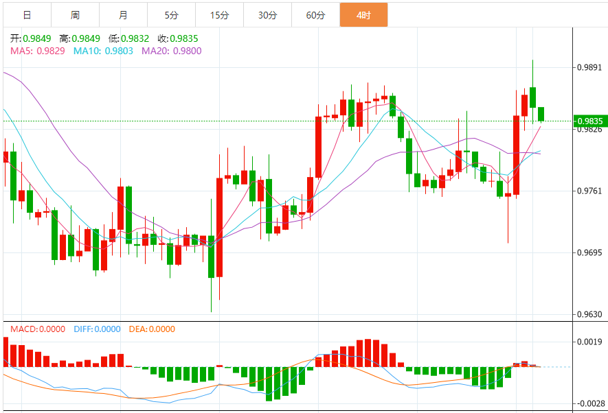 技术上,趋势线阻力位阻止汇价实现突破接近1.0000关口,而欧元/美元正测试0.9850区域。将4小时图放大,显示欧元/美元可能会出现整理,多头将需要自前期阻力0.98附近走强,否则汇价将测试阻止汇价跌破0.9750 - 0.9700支撑区间的前期低位。
