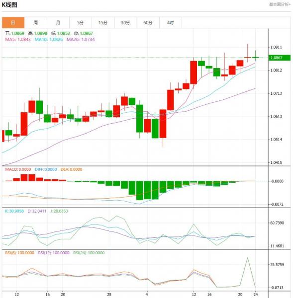 行情分析:汇价高见1.0898,低见1.0852。上一交易日,汇价收于1.0868。从技术角度来看,欧元/美元正处于盘整阶段,有扩大涨势的空间。该货币对继续交投在关键的斐波那契水平1.0745(即2022年跌势的61.8%斐波那契回撤位)上方。4小时图显示,欧元/美元周四大部分时间都在温和看跌的20周期SMA附近波动,而技术指标在其中线附近,仍无方向性。100周期SMA和200周期SMA维持向上倾向,较当前汇价低逾100点。假如新的买入压力推动欧元/美元突破1.0870,这应该会导致该货币对进一步突破1.0900关口。日线图上的技术指标缺乏方向性力量,但保持在正面水平内,并未暗示上行枯竭。此外,20日简单移动平均线(SMA)坚定地向上,低于当前汇价水平,但高于较长期均线。欧元/美元短期前景中性,但风险仍偏向上行。