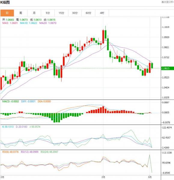 周四盘中,截止目前,欧元/美元货币对1.0615/1.0615,上升至0.0050,增幅0.47%。欧元区2月通胀有所缓解 但核心物价飙升。