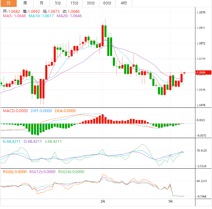 数据方面,欧元区投资者信心指数从2月的-8.0恶化至3月的-11.1,预期为-8.6。此外,欧元区现状指数从2月份的-10.0改善至-9.3,而预期指数则从2月份的-6.0暴跌至-13.0。欧盟统计局周一公布的官方数据显示,欧元区2月份零售销售环比增长0.3%,预期为1.0%,前值为-1.6%。同比数据显示,欧元区2月份零售销售同比增长2.3%,高于1月份的-2.8%和普遍预期的1.9%。