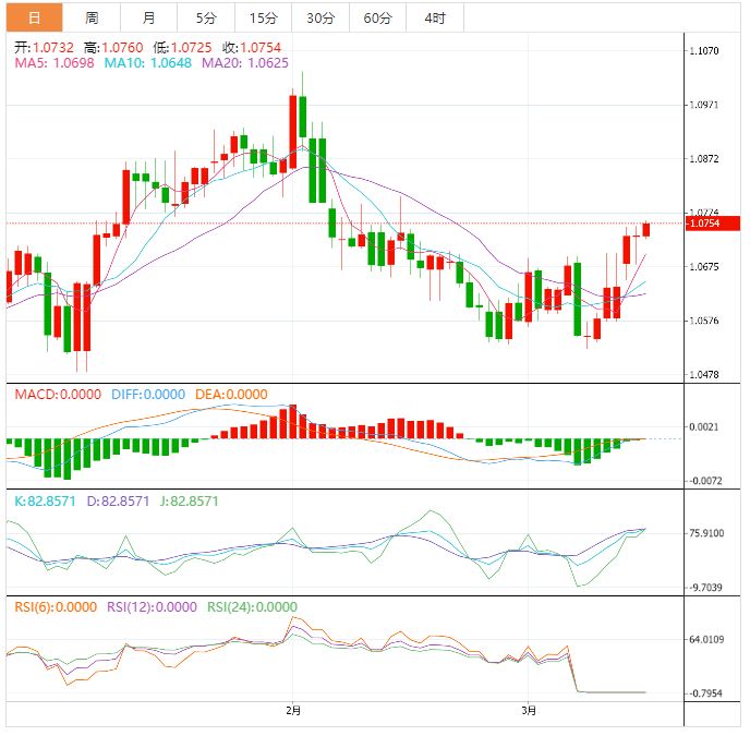 欧元兑美元的看涨势头持续。市场对美联储(Fed)下一次公开市场委员会(FOMC)会议的态度有所缓和,市场预期加息幅度仅为25个基点,低于银行业担忧之前市场预期的50个基点。