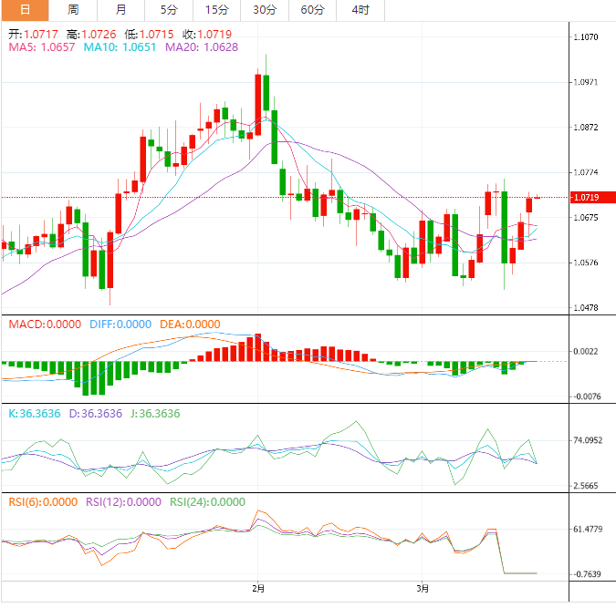 欧元兑美元连续三天的看涨反弹,导致其再次测试了2月份高点1.1036的下行趋势线。