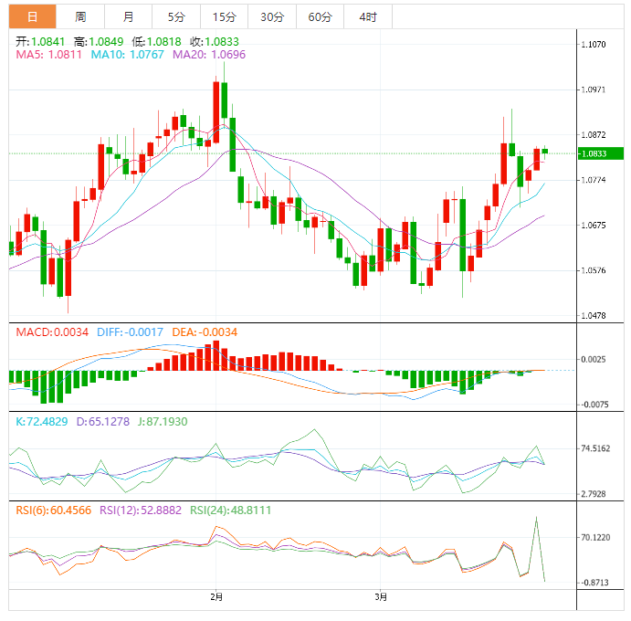 欧元技术面:欧元兑美元成功突破了1.0820水平,并维持在该水平上方,加强了日内和短期继续看涨趋势的预期,为继续上涨并实现1.1032的额外涨幅打开了道路。EMA50继续从下方支撑价格,以支持所建议的积极情况,等待获得帮助继续看涨浪潮的积极势头。