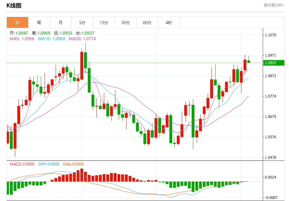 今日周三,截止目前欧元兑美元报1.0938,下跌0.12%。