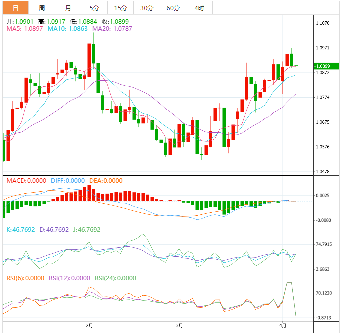 到目前为止,欧元兑美元下跌了0.04%,至1.0898,并面临着下一个争夺点1.0788(4月3日的月度最低价),然后是1.0745(55日移动均线),最后是1.0712(3月24日的最低价)。