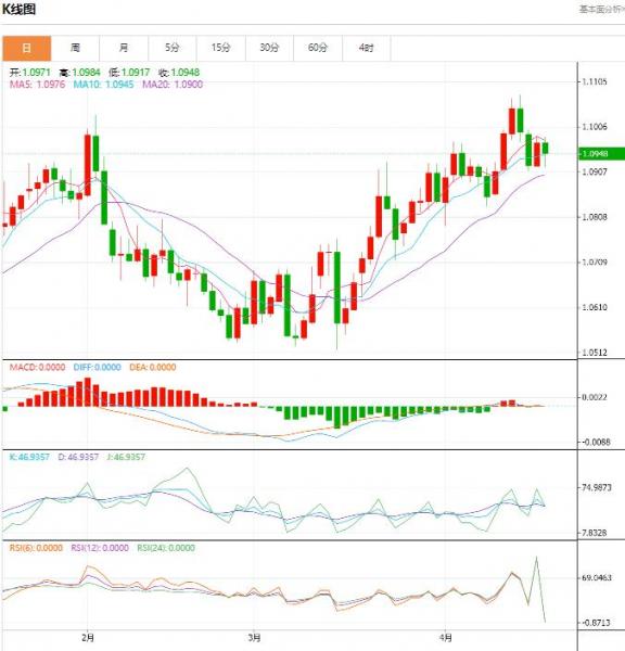行情分析:汇价高见1.0984,低见1.0917。上一交易日,汇价收于1.0971。基本面上看,欧元昨日震荡上行,日线小幅收涨。除空头回补对汇价构成了一定的支撑外,美元指数在风险情绪转暖和美债收益率下滑而走软也是支撑欧元反弹的重要因素。此外,欧洲央行官员发表的鹰派言论升温欧洲央行的加息预期升温也对汇价构成了一定的支撑。技术上,小时图盘中反弹在1.0980一线遇阻回落,但力度不强。4小时图在1.0900上方企稳小幅走高,力度不强。日图整体上行势头维持完好,短线在MA20附近支持企稳反弹,关注1.1000阻力。