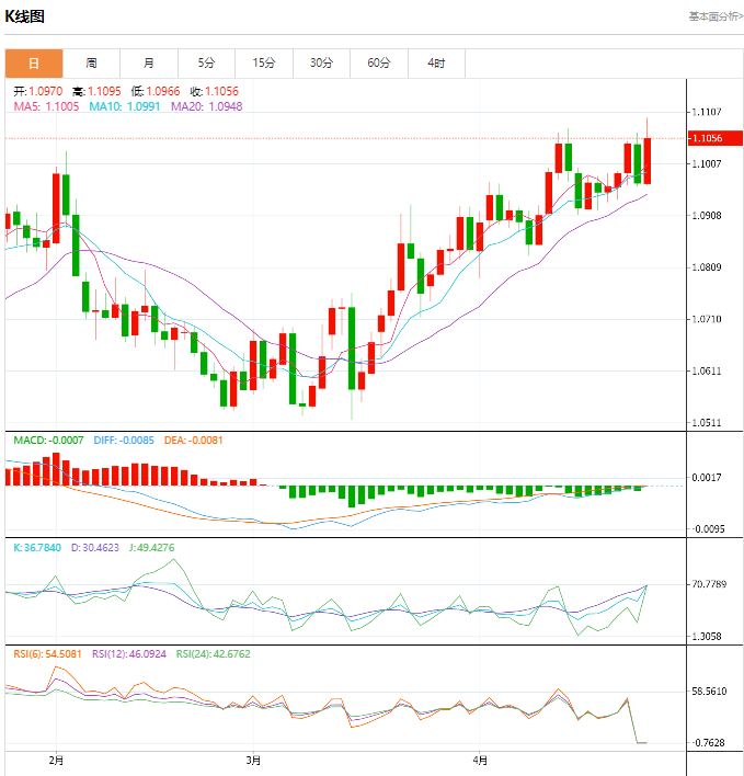 周三盘中,截止目前,欧元/美元货币对1.1057/1.1056,上升至0.0085,增幅0.0085。欧元/美元将摆脱规模庞大期权所形成的枷锁。欧元/美元在上个月的大部分时间里陷于区间交投,但束缚该货币对的大量外汇期权和相关对冲现在几乎都已到期。上周在1.0900-1.1100区间仍有400亿欧元的期权,将于5月第一周到期。在周三又有120多亿欧元到期后,上述规模将减半,而在5月3-4日美国和欧元区利率决定前,期权将进一步减少。