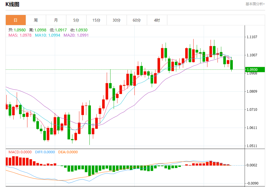 周四欧市盘中,欧元兑美元交投于1.0929,跌幅为0.47%。