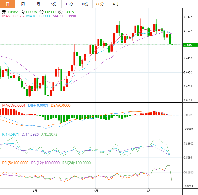 欧元兑美元在周四跌至四周低点1.0900附近后尝试温和反弹。