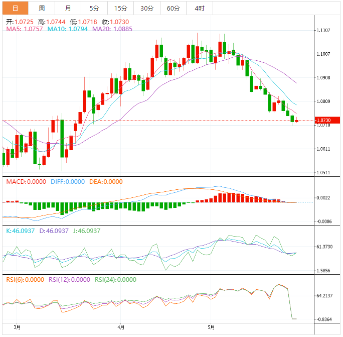 在欧元方面,法国5月消费者信心指数稳定在83,意大利稍后也将公布相同数据。
