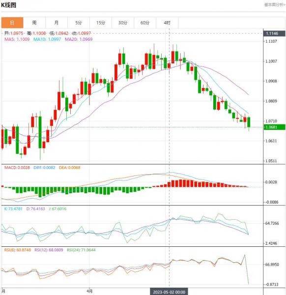 周三盘中,欧元/美元货币对1.0681/1.0680,下跌至-0.0048, 跌幅-0.45%。欧元/美元未能完全发挥周二的优势。