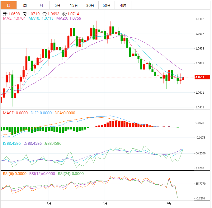 到目前为止,欧元兑美元已上涨0.13%,至1.0711,突破1.0779(6月2日的周最高价)将是1.0807(100日移动均线)的目标,并将向1.0879(55日移动均线)前进。