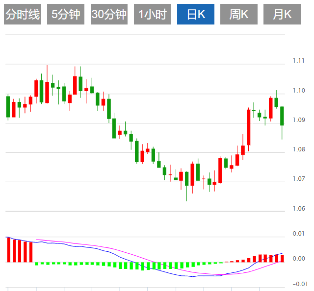 欧元兑美元下跌逾0.8%至1.0850附近。周五(6月23日)公布的6月PMI数据表现不佳,法国服务业意外收缩,德国制造业收缩程度意外加深,欧元区经济衰退前景骤然加重,汇价因此重回1.09关口下方。