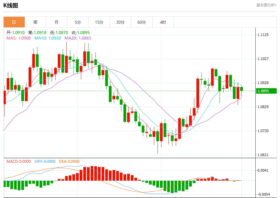 今日周一,截止目前欧元兑美元报1.0896,下跌0.14%。
