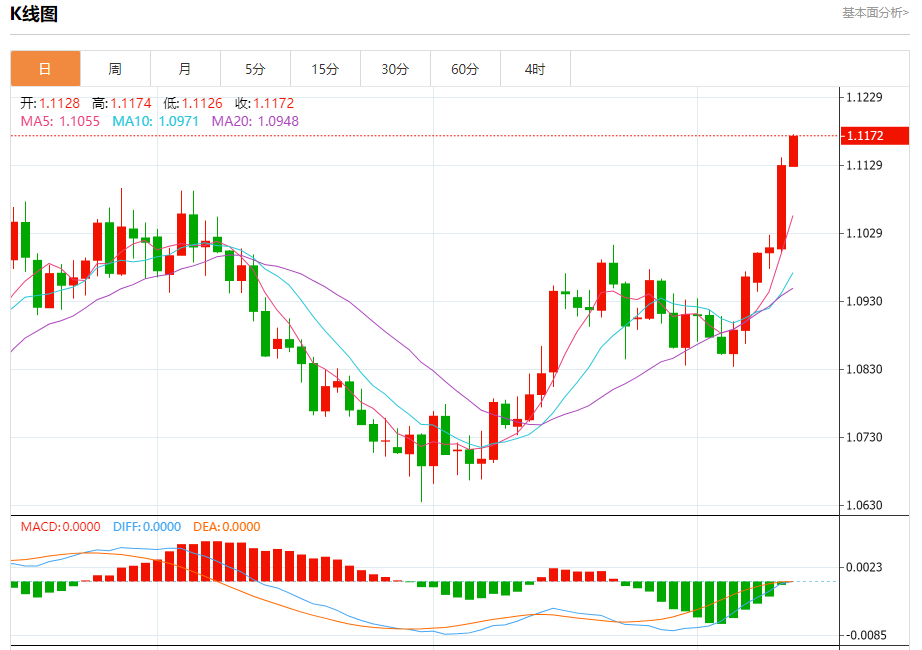 周四欧市盘中,欧元兑美元交投于1.1173,涨幅为0.39%。